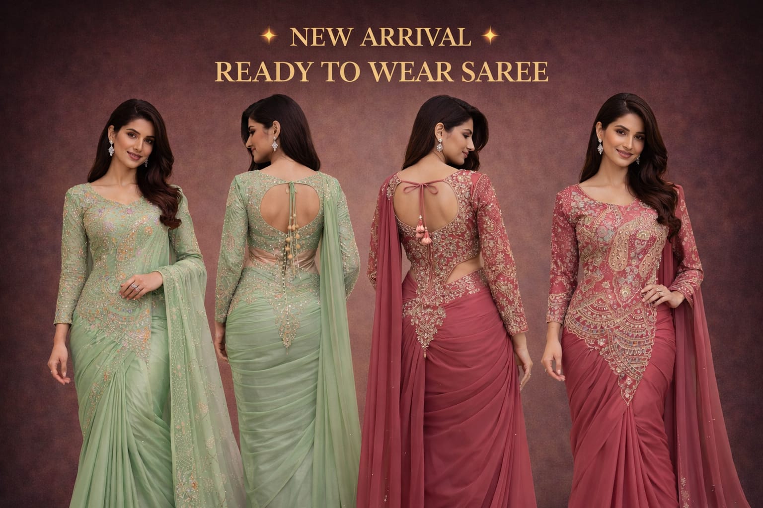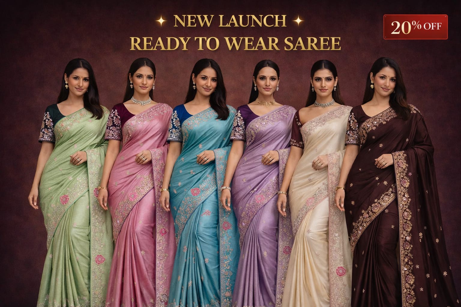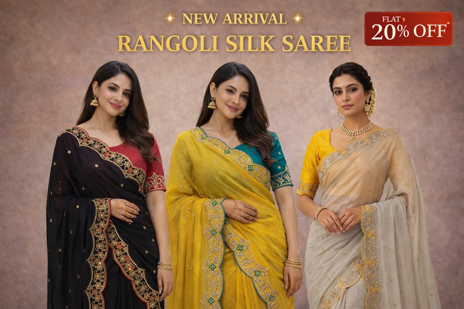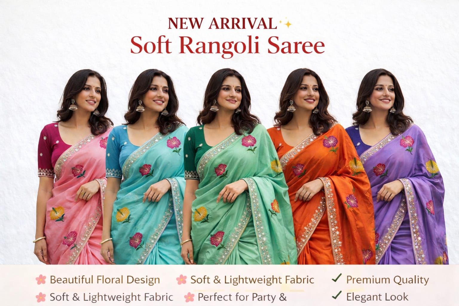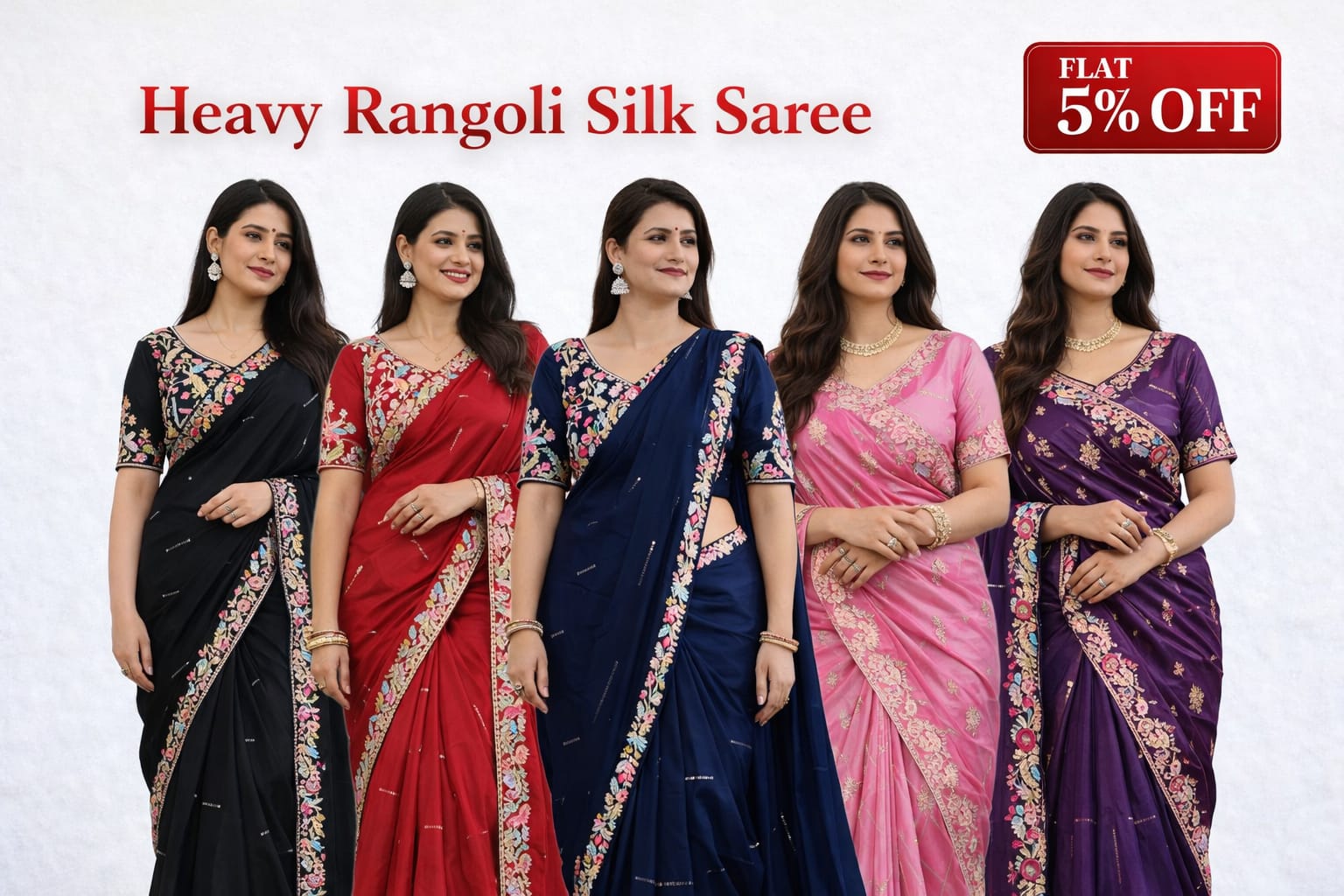 Heavy Embroidery Rangoli Silk Ready To Wear Saree With Designer Blouse
