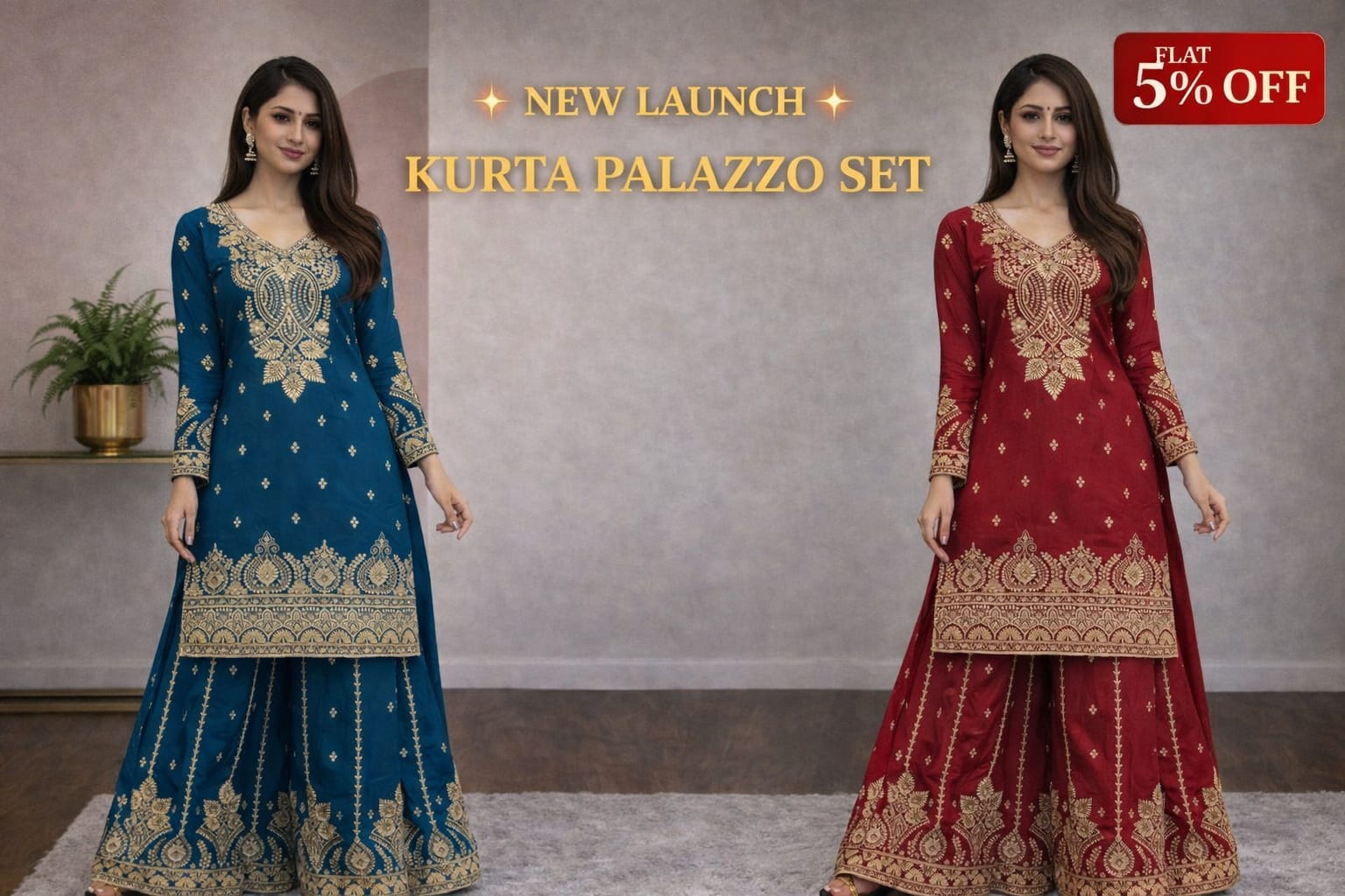Designer Chinon Embroidery Top Palazzo Set with Dupatta
