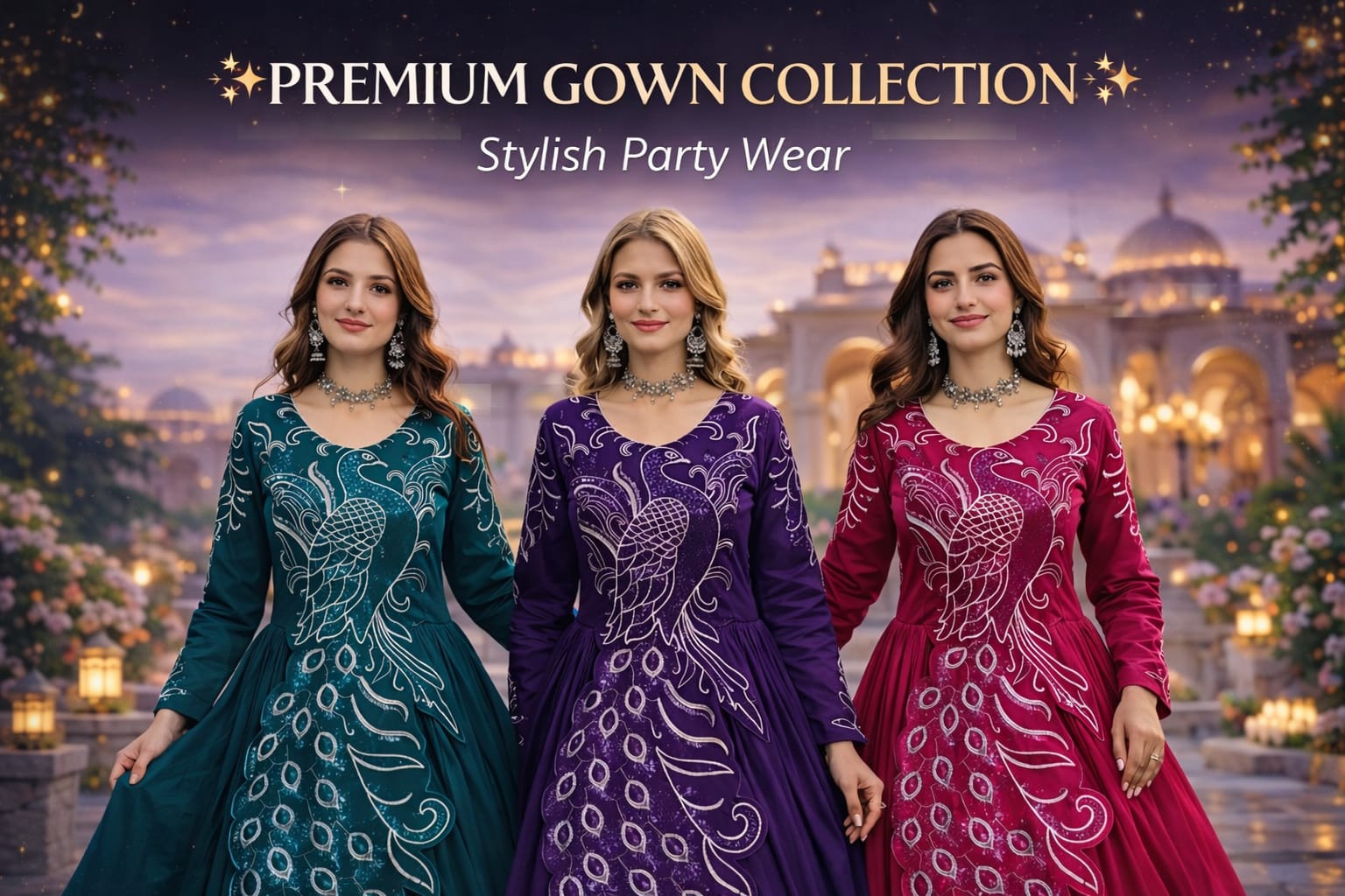 Floral Print Weightless Marble Fabric Long Party Wear Gown Dress