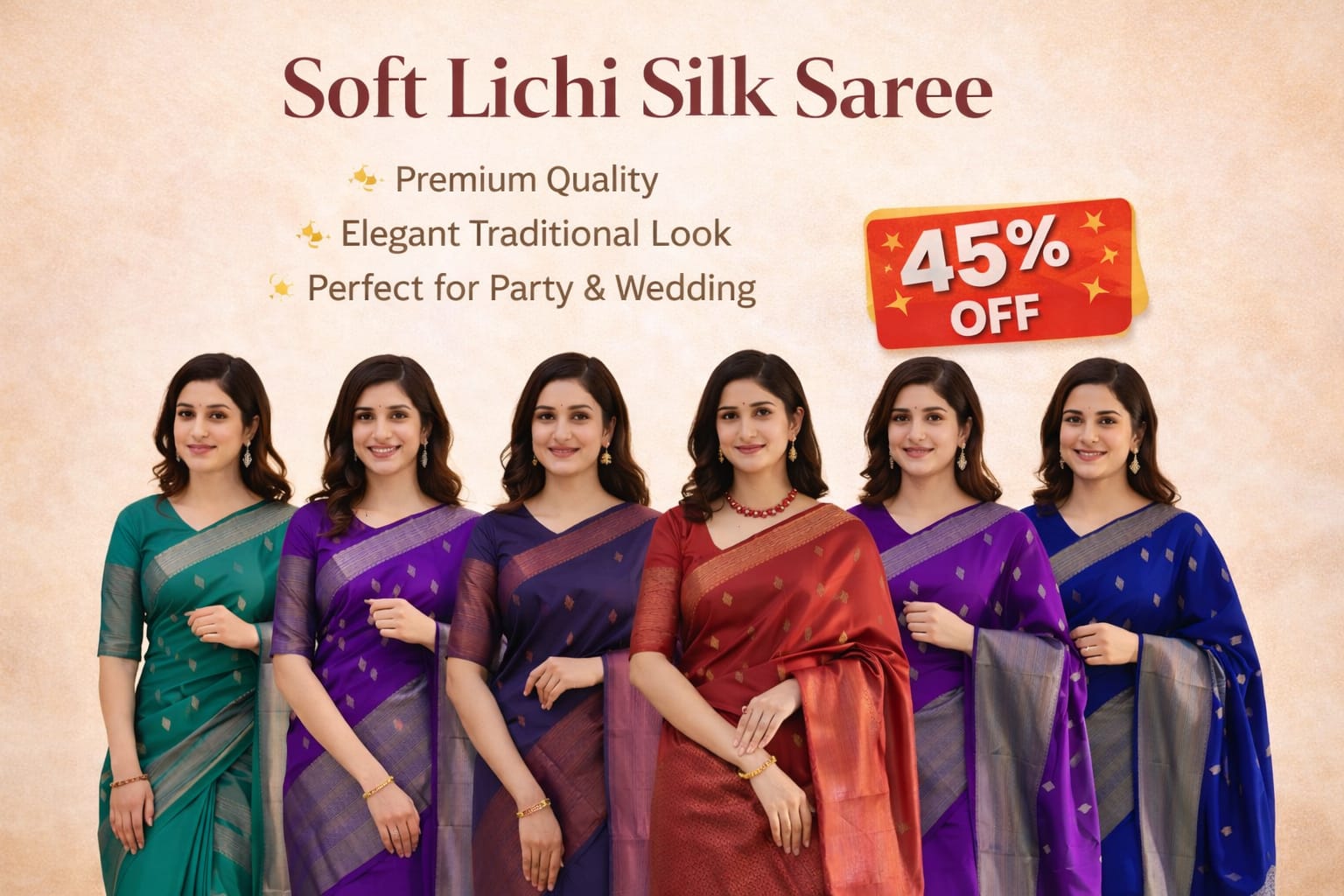 Shopping ₹1999 Unlock ₹1 Saree Only Soft Lichi