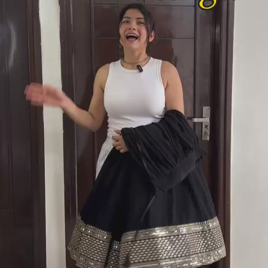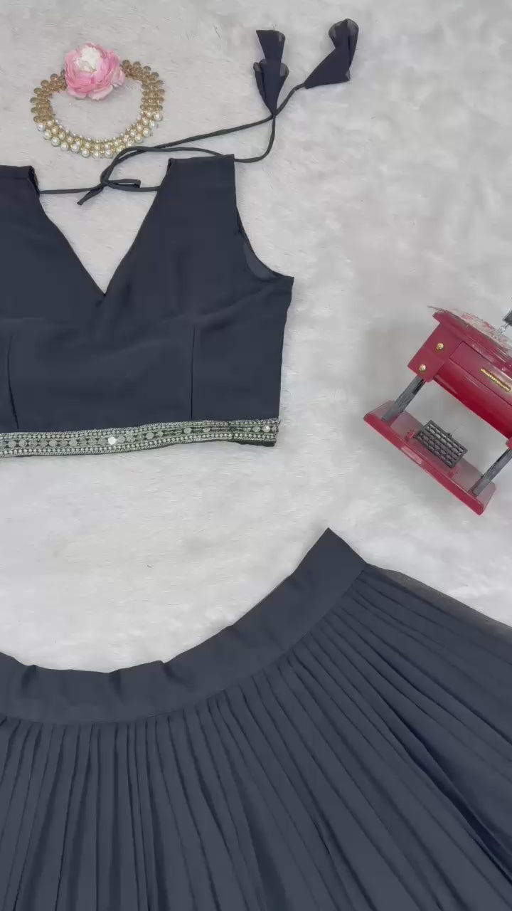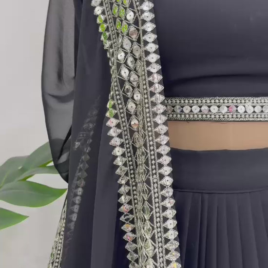 Elevate your festive and party look with this elegant Black Lehenga Choli Set, crafted in premium faux georgette fabric.