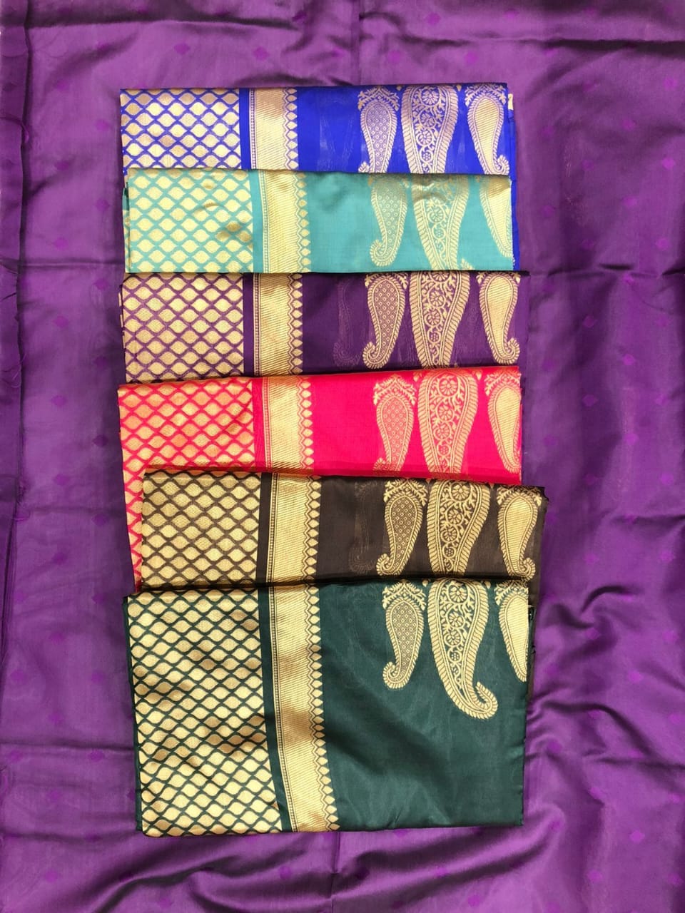 Ye dark green colour saree elegant golden zari paisley motifs aur rich woven border ke saath aati hai. Premium finish aur classy shine isse festival, pooja, family function aur traditional occasions ke liye perfect choice banati hai. Simple design ke saath royal look jo har age group par suit karta hai.