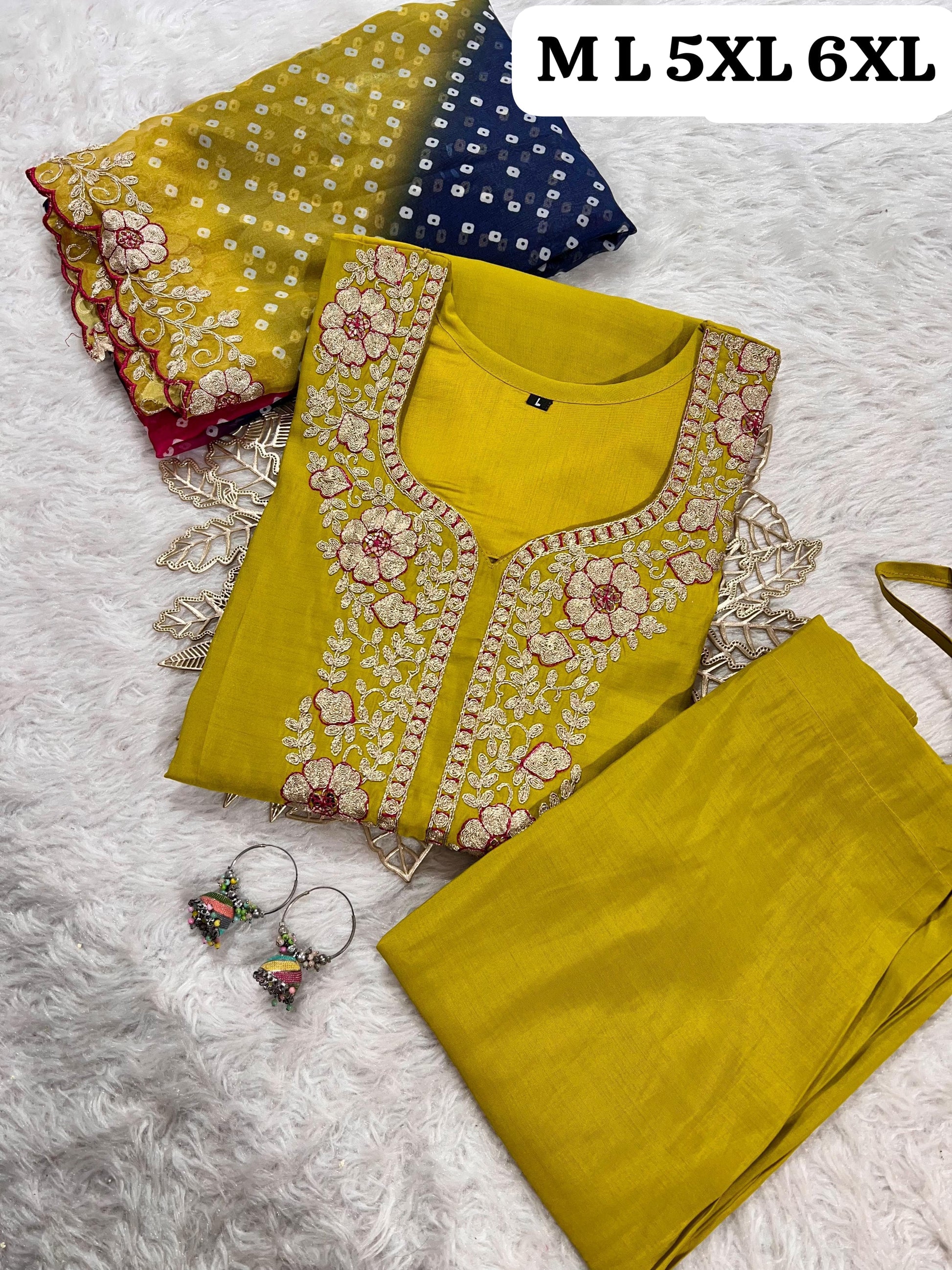 Designer Roman Silk Kurti Pant Set with Gota Patti Embroidery & Lehariya Dupatta