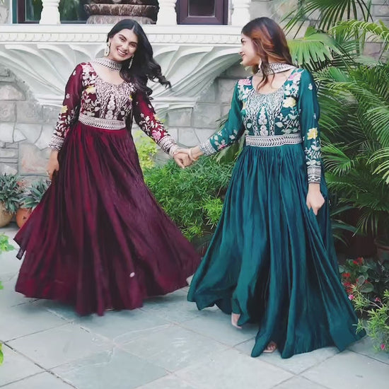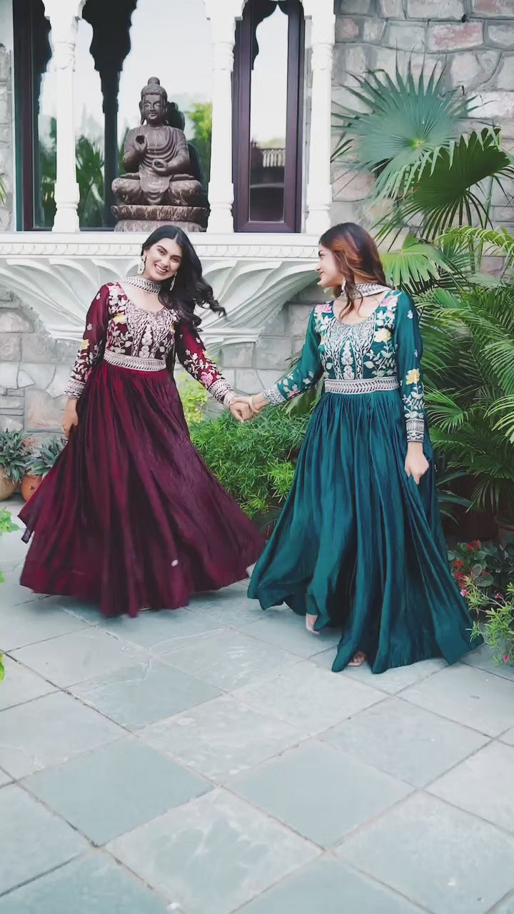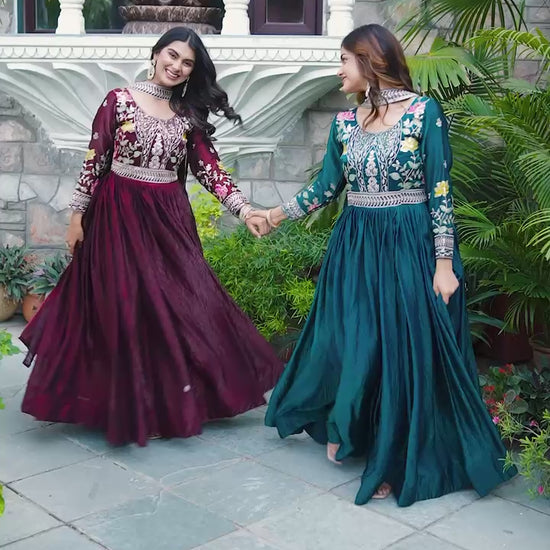 Step into elegance with this Premium Festival Wear Long Gown & Dupatta Set, beautifully crafted in luxurious Fendy Silk fabric.