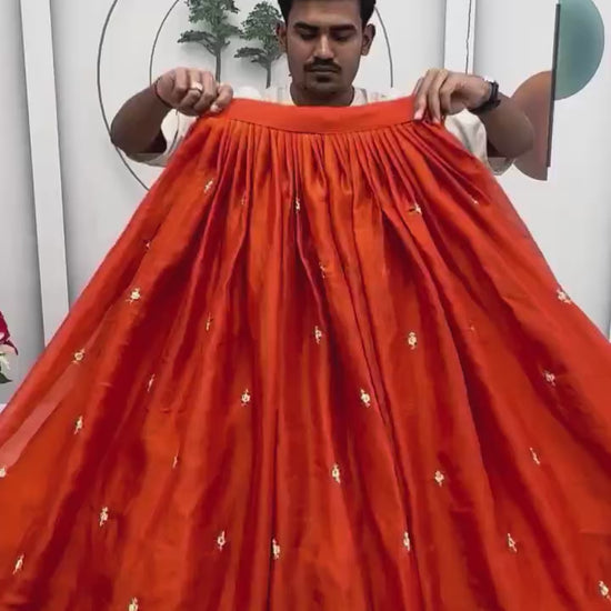 Festival Special Heavy Embroidered Moss Simar Lehenga Choli with Dupatta | Orange & Olive Green