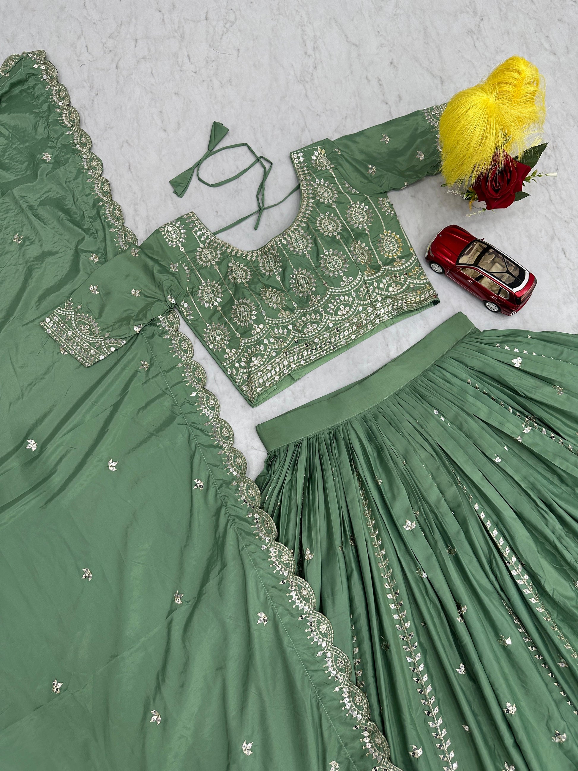 New Festival Wear Pure Crepe Silk Lehenga Choli with Heavy 7mm Sequence Embroidery | Fully Stitched