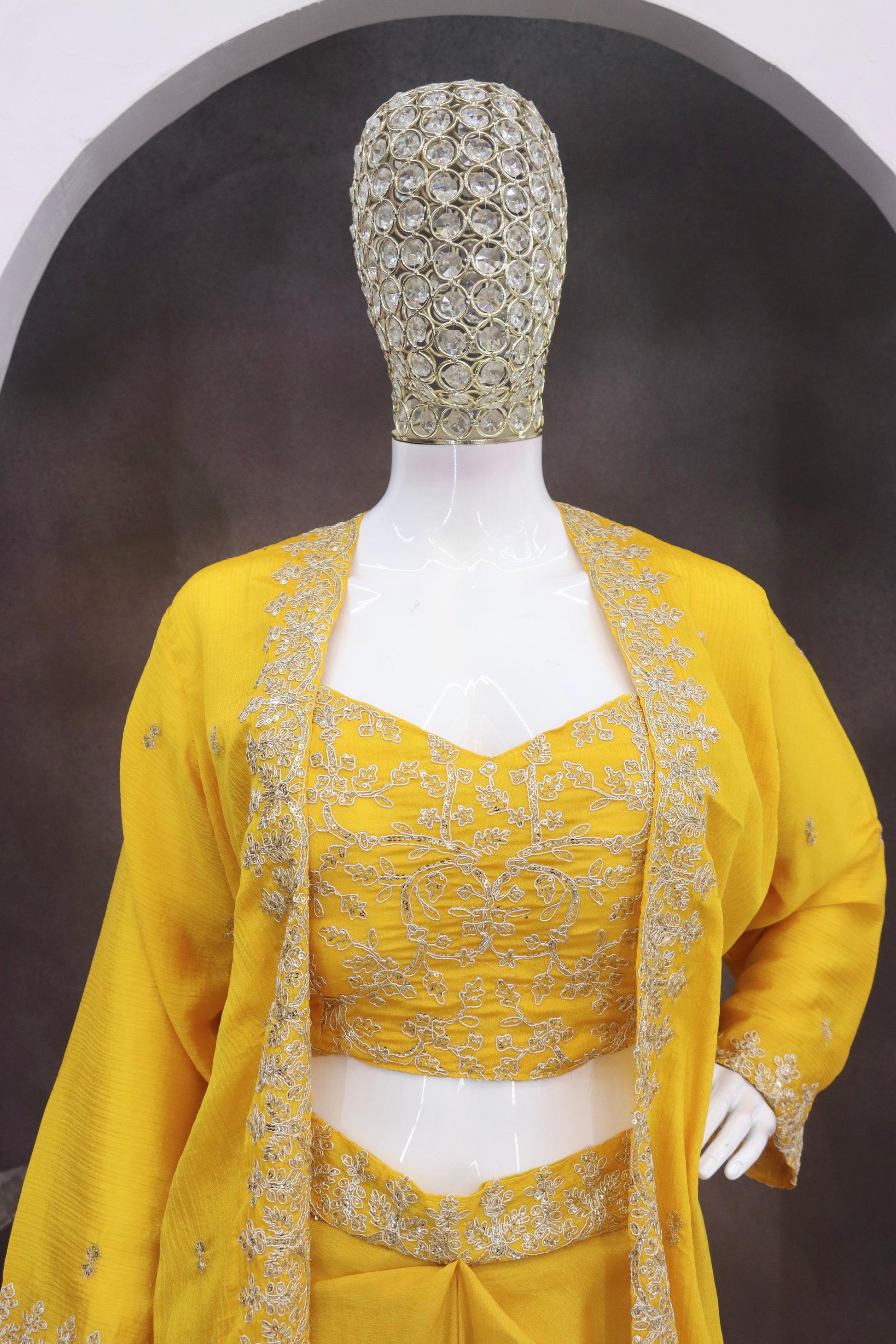Premium Chinon Silk Embroidered Shrug Sharara Set – Party & Festive Wear