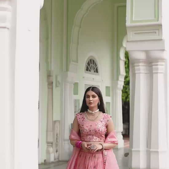 Festival aur wedding season ke liye ek royal aur elegant lehenga set, jo premium fabric aur fine embroidery ke saath aata hai. Heavy look ke saath comfortable fitting – perfect for special occasions.