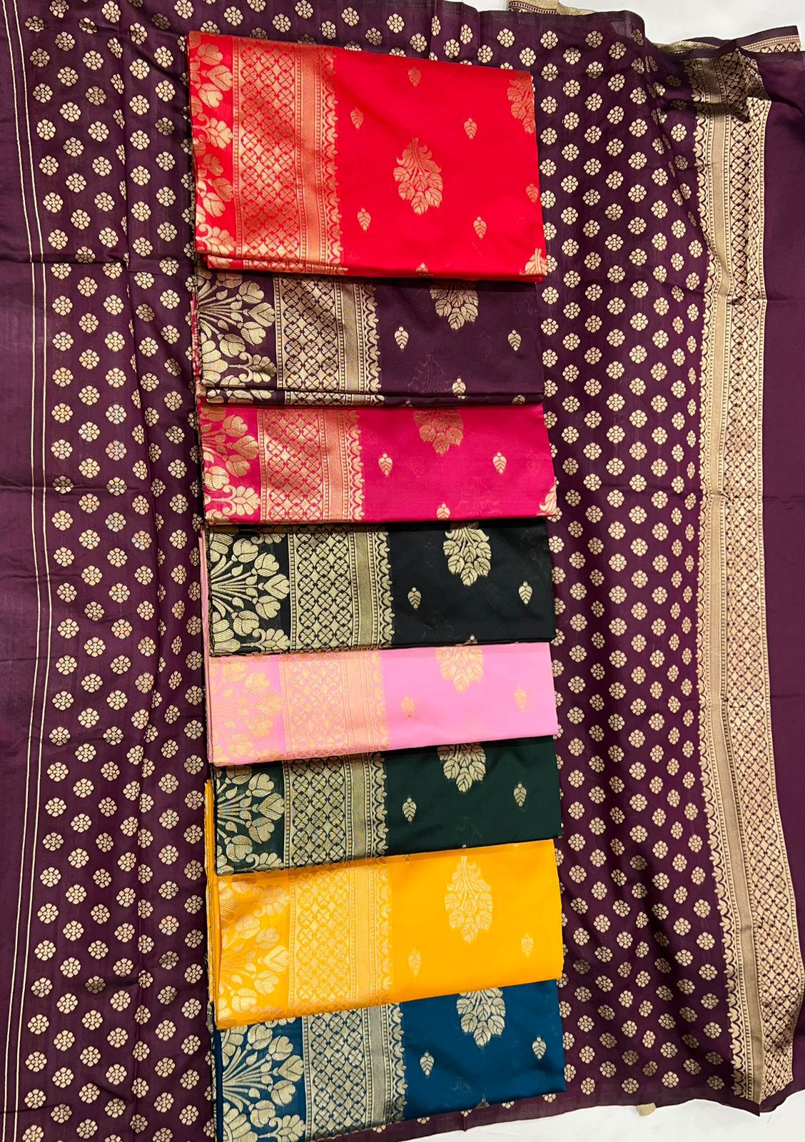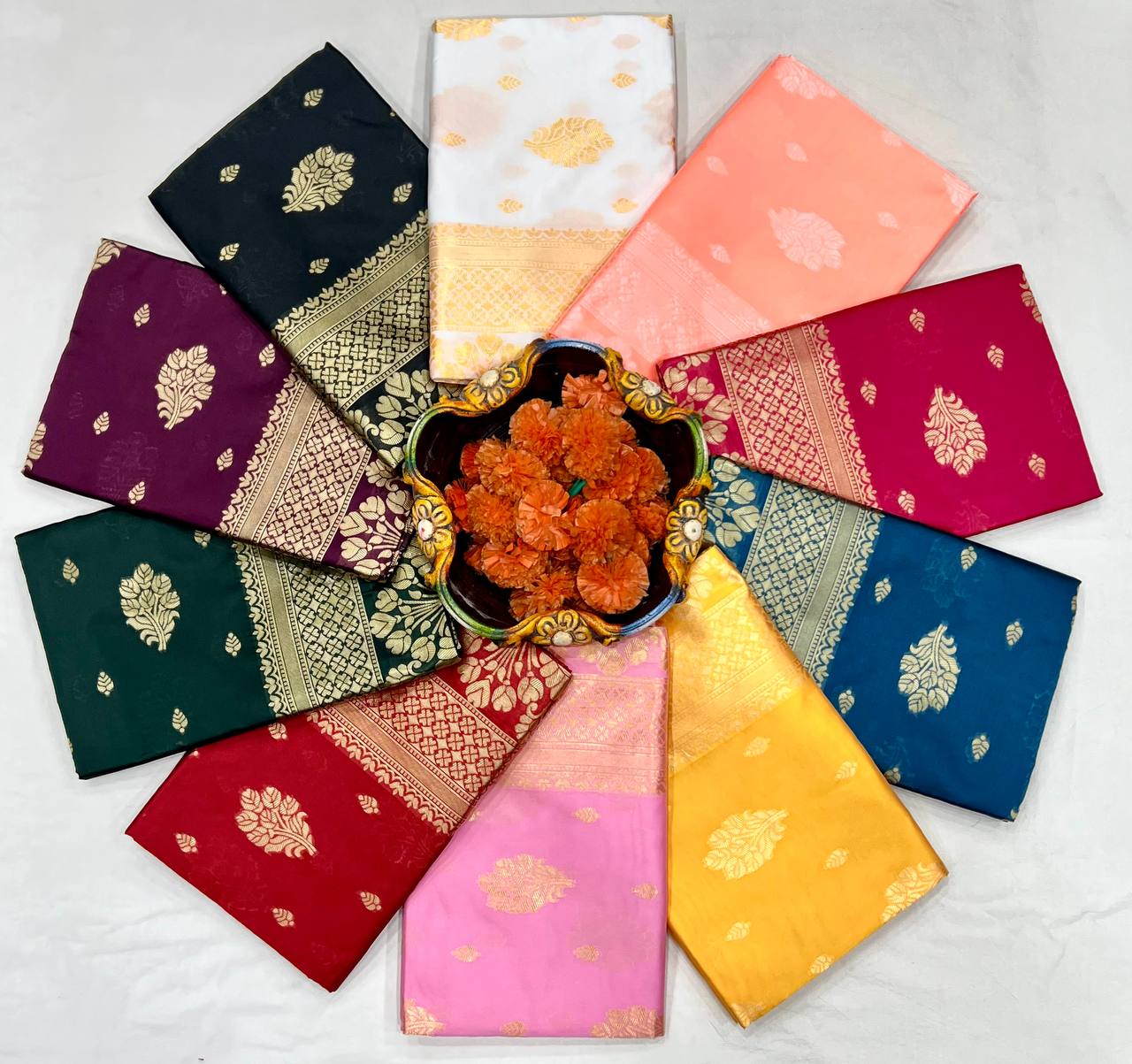 Elegant classic red soft lichi saree adorned with rich Banarasi zari butti and a traditional zari border. Perfect for weddings, festive occasions and traditional functions. Lightweight drape with a royal premium look