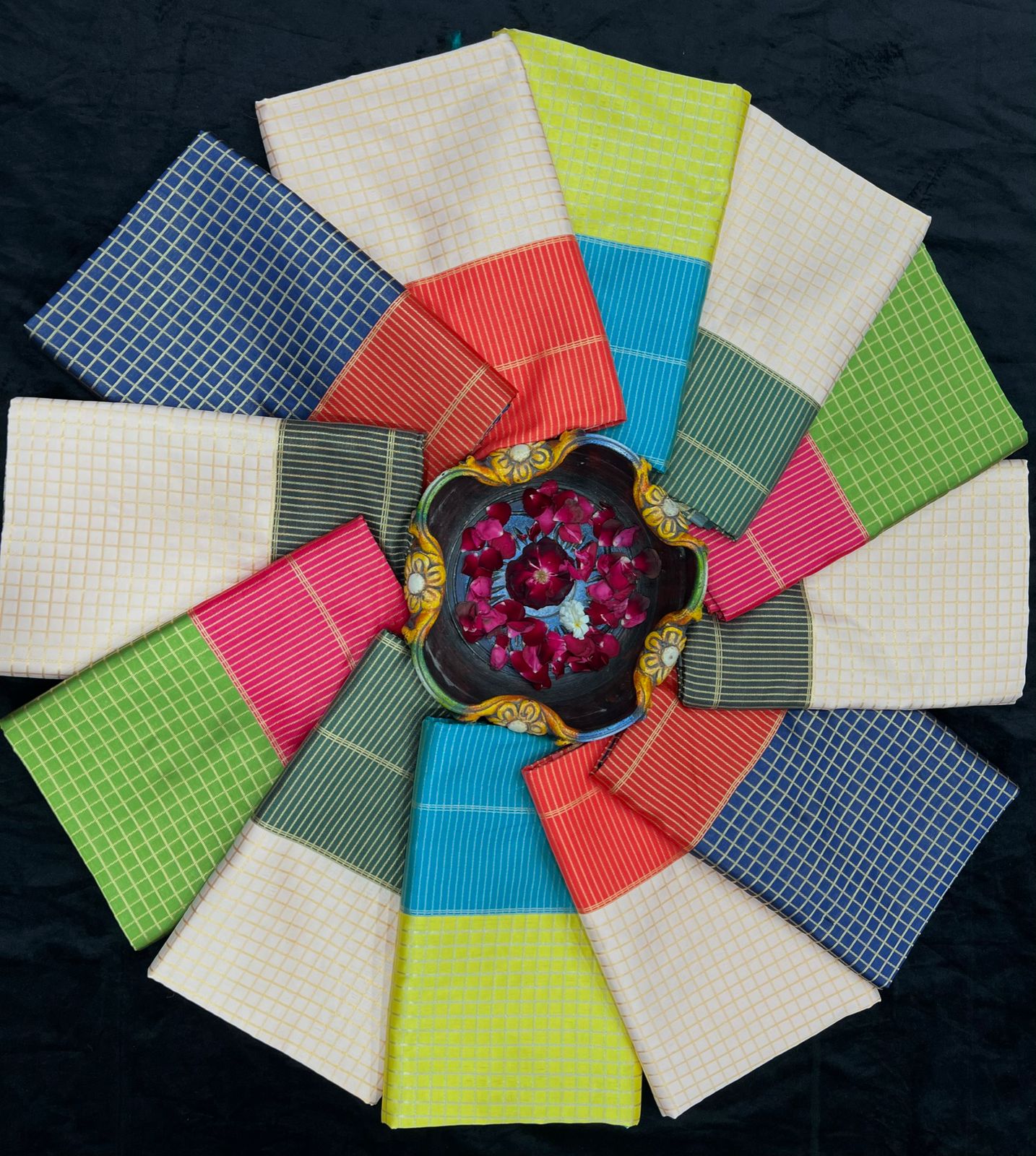 Fresh yellow cotton saree with contrast turquoise blue woven border. Lightweight, breathable aur elegant look ke saath daily wear aur office wear ke liye perfect choice.